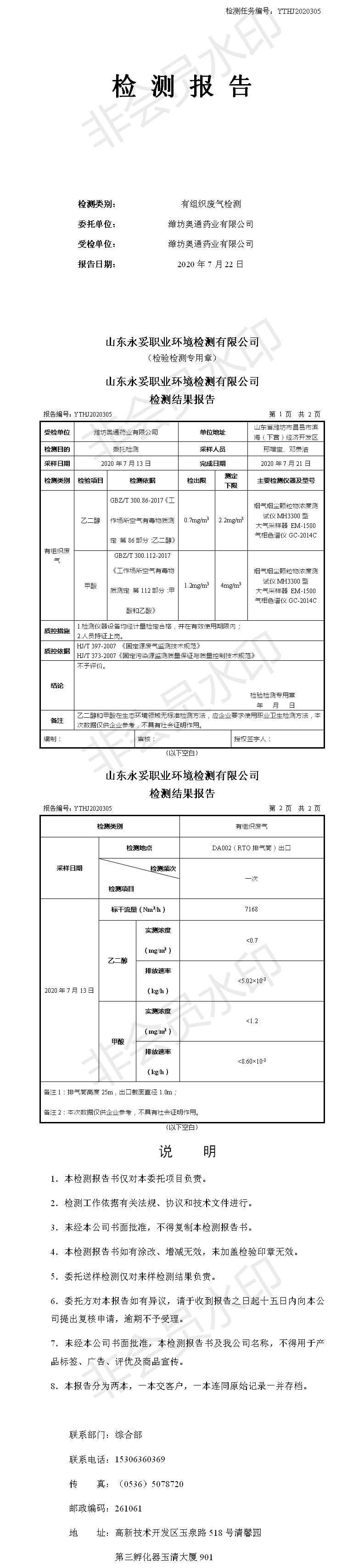 濰坊奧通藥業(yè)有限公司七月環(huán)境檢測(cè)報(bào)告