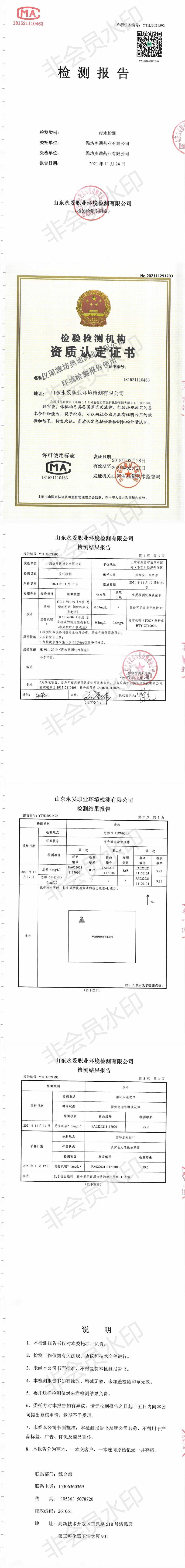 濰坊奧通藥業(yè)有限公司十一月環(huán)境檢測報(bào)告