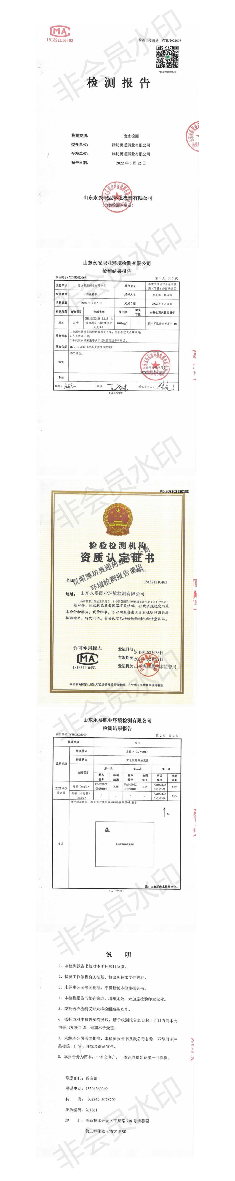 濰坊奧通藥業(yè)有限公司三月環(huán)境檢測報告
