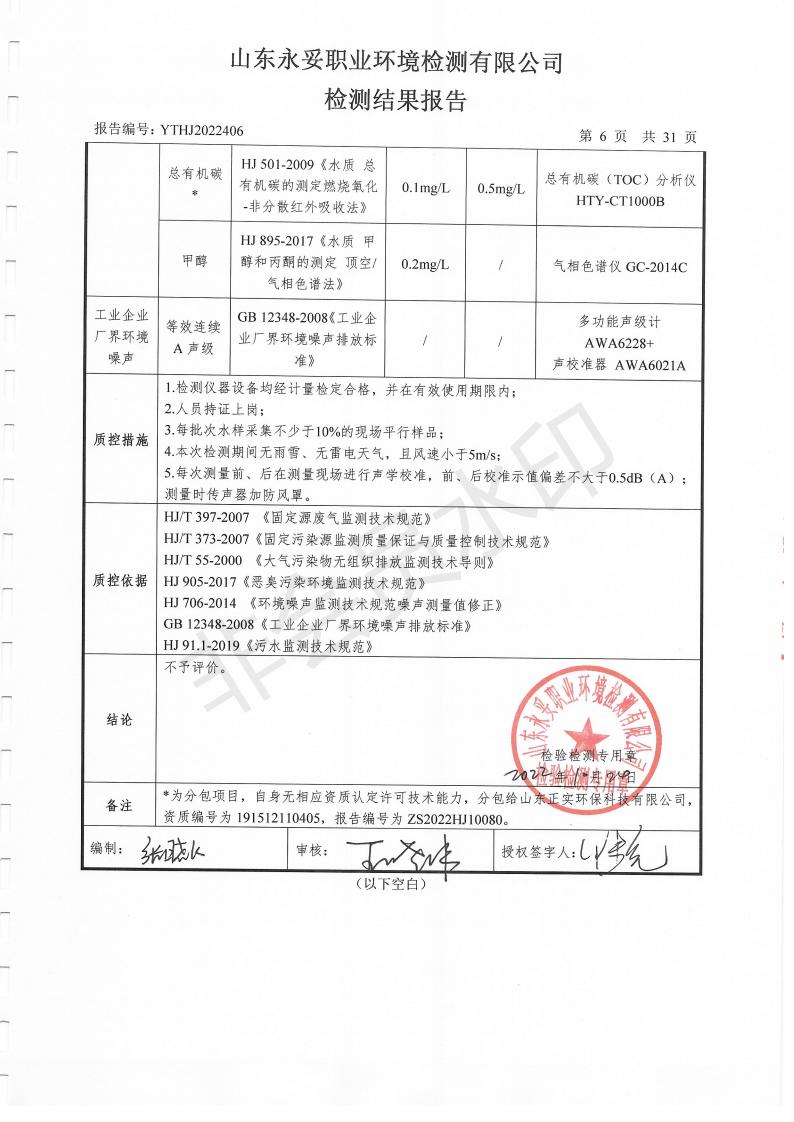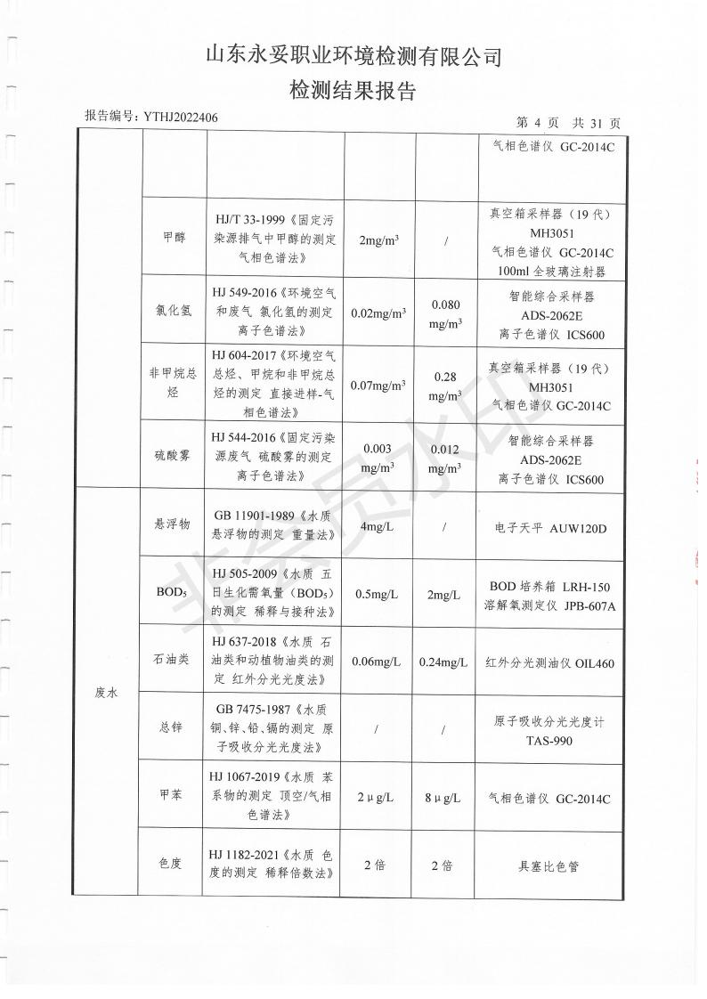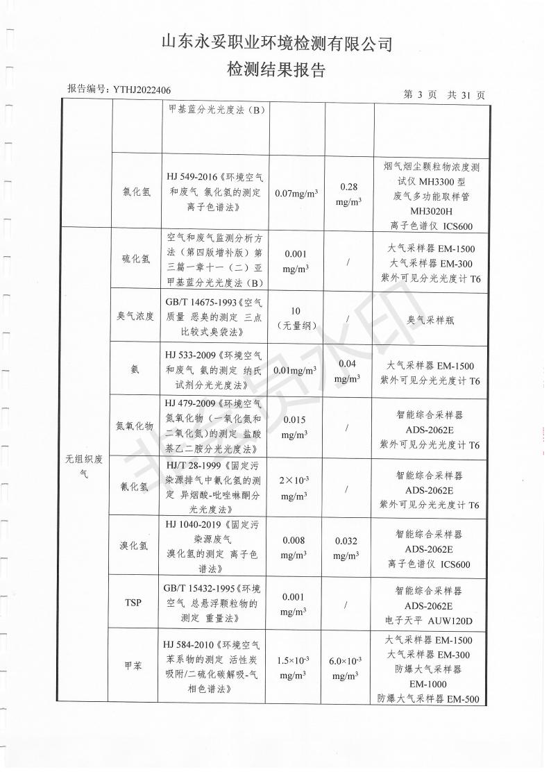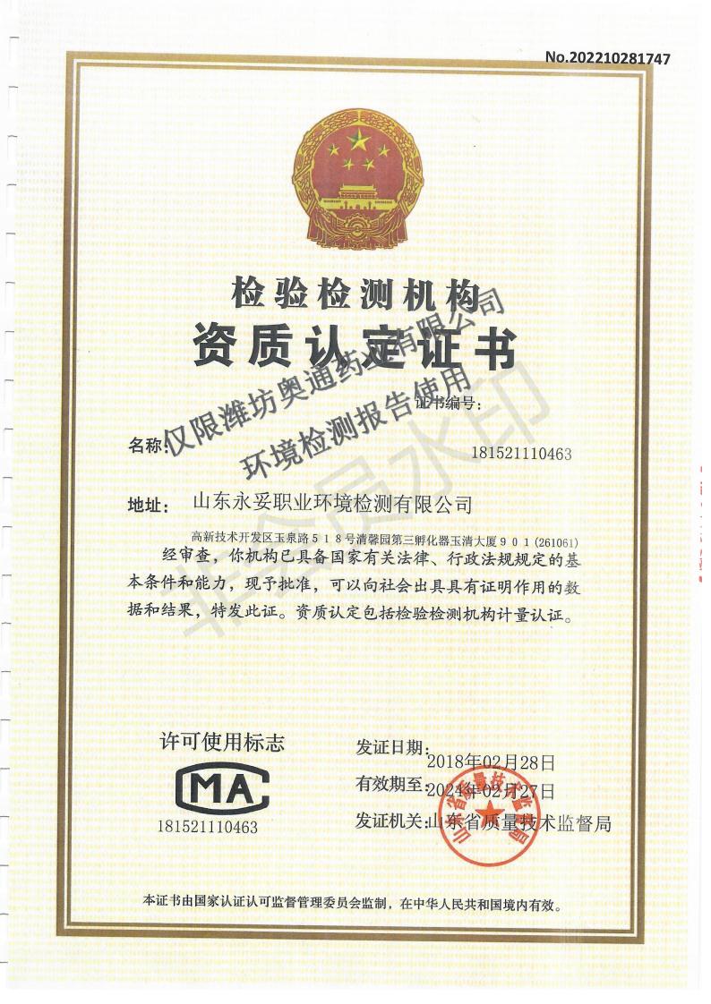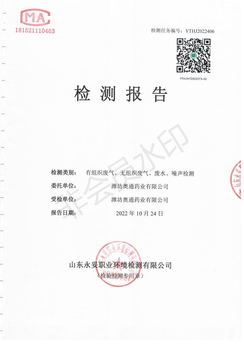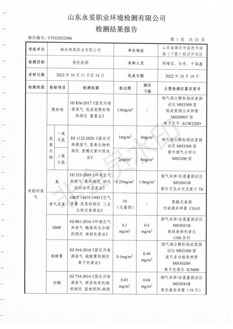 濰坊奧通藥業(yè)有限公司十月環(huán)境檢測報告